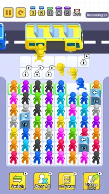 A casual parking elimination game, where players need to operate reasonably by queuing up small characters of the same color onto cars of the same color, in order to unlock the cars in the queue behind. When all the small characters of the same color get on the car, they can clear the level. As the level progresses, the difficulty will increase significantly. At the same time, there are also some props in the game that can be used to help you quickly clear the level