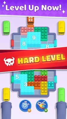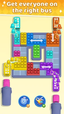 Your mission: slide the blocks, clear the path, and match each colored stickman with the right bus. It's time to solve clever block puzzles, outsmart tricky obstacles, and escape the jam!