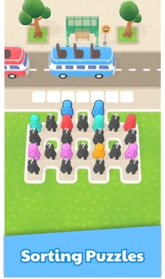 • Engaging & Calming Gameplay: Spend hours immersed in relaxing yet challenging puzzles as you strategically arrange passengers and sort them into the correct buses.