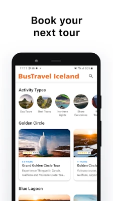 » Chat with our customer support team. » Receive up-to-the-minute itinerary notifications. » See descriptions and photos of all stops on your route. » Book your next BusTravel Iceland tour!