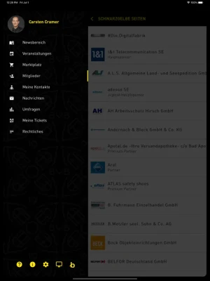 • Einblick in die „schwarzgelben Seiten“ – das Mitgliederverzeichnis des BVBBusinessNetzwerk