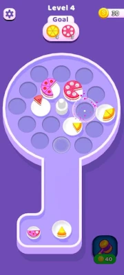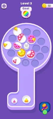 - Rotate the platform and shoot the cakes! - Similar cakes next to each other will sort among themselves! - Complete a cake to collect it! - Collect all the required number of cakes in the goal - Clear all the levels! - Enjoy!