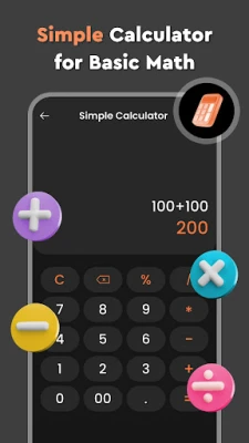Stuck on a math problem? Numbers got you confused. No problem! Get the All-in-One Calculator app today! This easy-to-use app is like having a mini calculator in your pocket. It can add, subtract, multiply, and divide, just like a regular calculator. But it can do even more! Need to convert dollars to euros when you travel? Check your Body Mass Index (BMI) for better health? Split a restaurant bill with friends? This app can do it all! Download the All-in-One Calculator and converter app now.