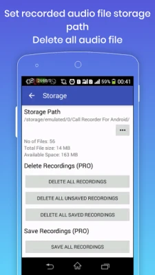 * Delete all calls recordings, all saved call recordings and all Unsaved call recordings