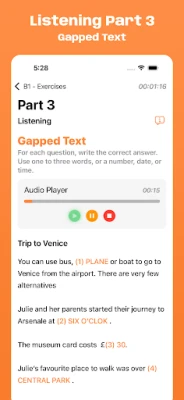 Want to improve a specific skill? Practice only the parts you need, like Reading & Use of English Part 1, or Listening Part 3... It’s focused, smart, and effective.