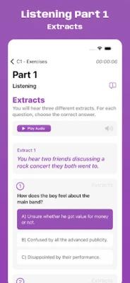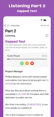 Get ready for the Cambridge C1 Advanced Certificate of English (CAE) with this complete exam simulator. Designed for English learners, this app lets you take unlimited Reading & Use of English and Listening exams just like the real Cambridge Assessment. All the content is reviewed by professional English teachers to make sure you’re getting high-quality practice.