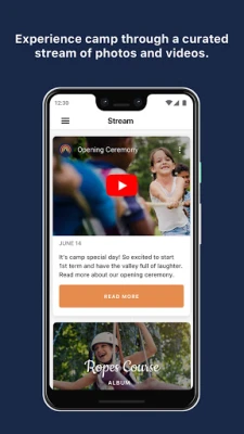 A curated stream brings together the content that’s important to you. Join your child’s journey with a personalized stream of camp photos, albums, and quick updates from camp.