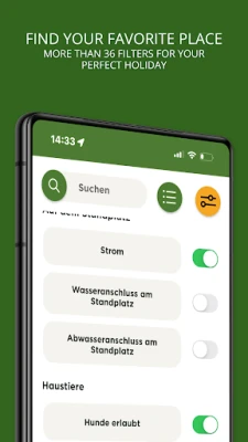 Simply enter your travel period in the app and view available campsites that might interest you. This saves you a lot of phone calls and waiting for answers ... and when you have found a suitable campsite, you can secure it immediately and book it easily online.