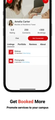 Easily list and promote your student business to a growing community of service seekers on campus.