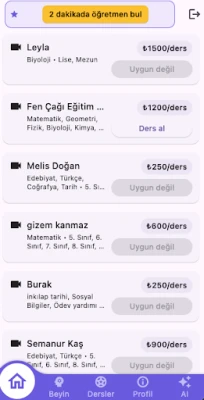 Bu platform, öğrencilere online ders alma imkanı sunmaktadır. İstediğiniz dersi seçebilir, online olarak kayıt olabilir ve derslerinizi istediğiniz zaman, istediğiniz yerden takip edebilirsiniz. Online dersler, öğrencilerin zamanlarını daha verimli kullanmalarını ve bireysel öğrenme ihtiyaçlarına daha iyi yanıt verebilmelerini sağlar. Ayrıca, öğrenciler farklı bir öğretmenle çalışarak bakış açılarını ve öğrenme deneyimlerini genişletme imkanına da sahip olabilirler. Bu platform, öğrencilerin online ders alarak akademik hedeflerine bir adım daha yaklaşmalarını sağlar.