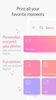 Canon Mini Print uygulamasıyla Canon Zoemini Küçük Fotoğraf Yazıcınızı ve Canon Zoemini S Hızlı Kamera Yazıcınızı kullanmaya başlayın. Çıkartma, metin, çerçeve, filtre ve diğer öğelerle fotoğraflarınızı kişiselleştirin! Anı yakalamak için fotoğraflar çekin veya yaratıcılığınızı kullanıp paylaşmak için sevdiğiniz sosyal medya veya bulut hesaplarınızdaki fotoğraflara erişin. İşiniz bittiğinde yazdırmak için şaheserinizi gönderin ve odanızı, defterinizi, dolabınızı, aynanızı, masanızı ve neredeyse her yeri süsleyebileceğiniz 2x3 inçlik çıkartma baskılarını kullanın!