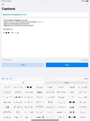 Create captivating captions using unique fonts, symbols, and kaomojis. Preserve spaces and line breaks, copy, and share on your favorite social networks. Organize your go-to hashtags for easy posting.