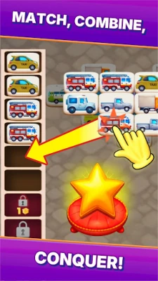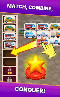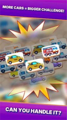 Your goal is to find and match three identical cars on the assembly panel. Once a trio matches – the cars disappear from the board, making room for new ones!