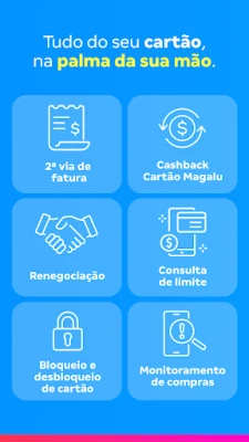 Solicite aumento de limite do seu Cartão Luiza Mastercard ou Cartão Magalu Visa Platinum diretamente no app.