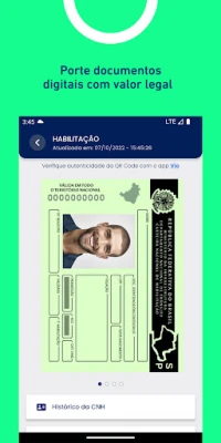 A CNH Digital e o CRLV Digital são as versões digitais da Carteira Nacional de Habilitação e do Certificado de Registro e Licenciamento de Veículo com o mesmo valor jurídico das respectivas versões impressas.