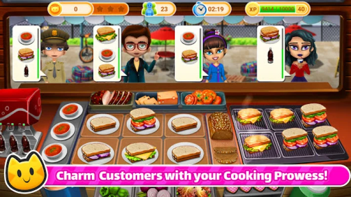 Help Chef Cat Ava manage her restaurant, and serve tasty food in this time-management ⏱️ food truck cooking game - from the al dente pasta of Italy, petite oven bakes of Paris, rich gourmet chocolate pies of America, interesting and peppy brews of London, to the triangular hand-made delights, hot bowls of ramen, shish kebab, seafood, dumplings, and dim sums fried or steamed, and Tacos for the road. 👩🍳 Top Chefs 👨🍳are not confined to the walls of the restaurant kitchen!