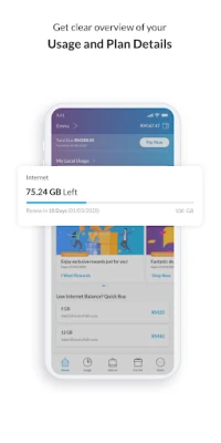 • Usage details: Check Internet, calls, SMS, and roaming usages