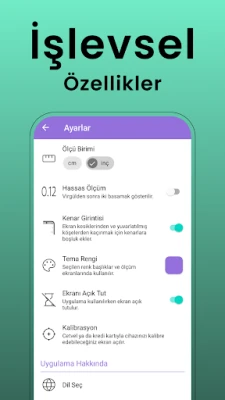 📌 ÖZELLİKLER: ▸ Üç Farklı Ölçüm Modu ▹ Kaydır ve Ölç Modu (Uzun Cetvel) ▸ Metrik ve Emperyal Birim Desteği: cm, inç (kesirli), inç (ondalık) ▸ Ölçüm Kaydetme, Geri Yükleme ve Paylaşma ▹ Ölçüm Kilidi ▹ Virgülden sonra iki basamak ▸ Kalibrasyon ▸ Şık Tasarım ▸ 11 Dil Desteği ▹ Tema Desteği ▸ Kullanıcı Dostu Arayüz