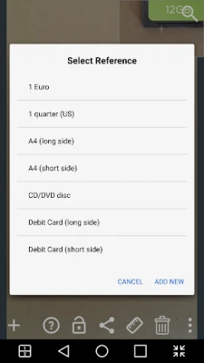 - Bir fotoğraf çekin (veya galeri seçin) ölçülen nesne ve kimin size boyutlarını biliyor referans nesne (nesneler aynı düzlemde olmalıdır)