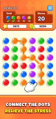 This "connect-and-eliminate" mechanic not only tests players' observation skills but also requires strategic planning. For example, in certain levels, players must achieve specific objectives within a limited number of moves, such as collecting a certain number of dots of a particular color, clearing obstacles, or activating hidden power-ups. As a result, every move is crucial and must be carefully weighed in terms of immediate gains versus future board layout possibilities.