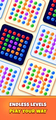 The core gameplay revolves around "connecting elements of the same color or type." On the game screen, players face a grid-based board filled with colorful dots. These dots typically come in basic colors such as red, blue, green, purple, and orange, with additional variations introduced as players advance through levels. By tapping and dragging, players must link two or more dots of the same color into a continuous path. When the path includes three or more connected dots, they are successfully eliminated, accompanied by dazzling animation effects. After elimination, the dots above fall down to fill the empty spaces, potentially triggering chain reactions and enabling larger combo clears.