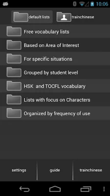 ★ You can also download word lists from your personal trainchinese account and receive words for audio training from the trainchinese Dictionary and Flash cards application for Android.
