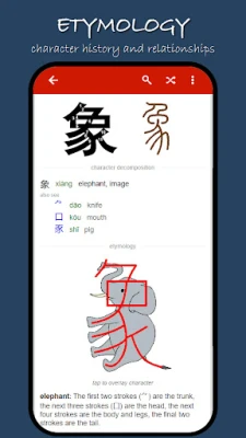 ★ Chinese character etymology – character history shown by tracing each character's origin, development and relationships.