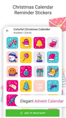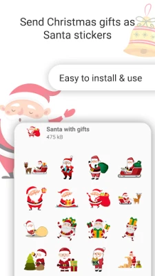 Easy to install sticker packs. Tap on add ‘+’ button from list of beautiful Christmas sticker packs. Go to WhatsApp and start sending Christmas stickers in chats.