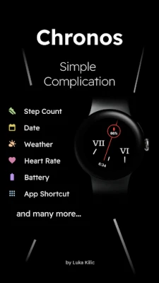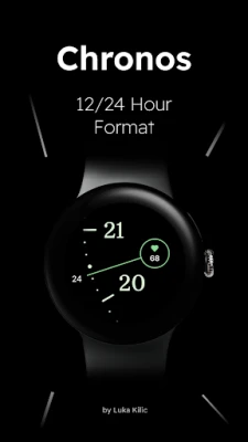 Chronos is a minimal Wear OS watch face with a unique concept. It features a zoomed-in cutout of analogue indices to display the time. The cutout moves in sync with the pointer to indicate the current time.
