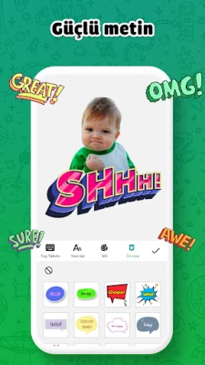 • Metin ve Başlıklar: Çıkartmalarınızı daha etkileyici hale getirmek için modern yazı tipleri ve hazır şablonlar kullanarak metin ekleyin.