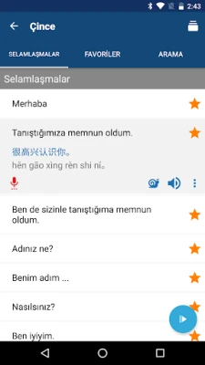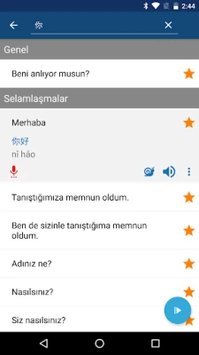 • Sık kullanılan Çince ifadeler ve sözcükler • Otantik Telaffuz • Telaffuzunuzu kaydedin ve karşılaştırın • En sevdiğiniz ifadeleri saklayın ve yönetin • Yazı tipi boyutu ayarlama • Anahtar sözcüğe göre ifade ve sözcük arayın • İnternet Gerekmez