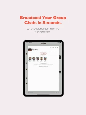 Circus is the first ever Live Group Chat app. Take your conversations on Circus live, and broadcast them to an audience of any size. Group Chats are the best form of conversation, now you can share your chats with the world.