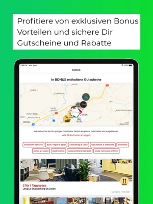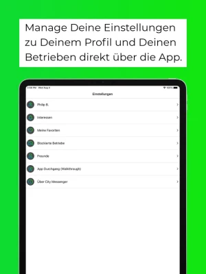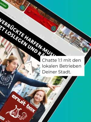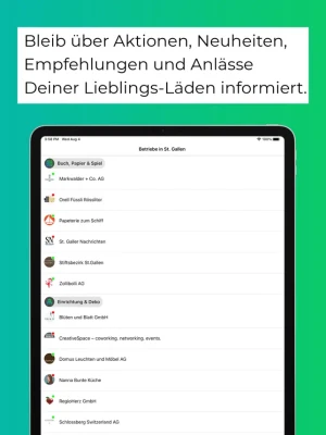 Einfach, schnell, direkt informiert über Angebote der Innenstadt. Schneller Überblick durch Anzeigemöglichkeit von Nachrichten nach Betrieben oder nach den Broadcast-Kategorien Aktionen, Neuheiten, Empfehlungen und Anlässe.