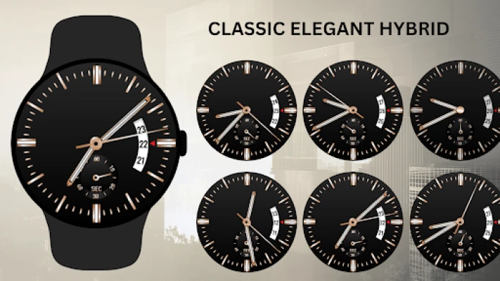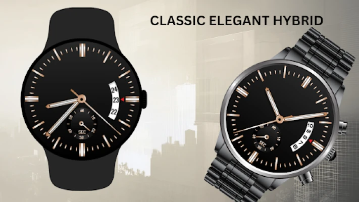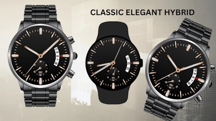 Dress your smartwatch with style and sophistication while keeping track of time and essential information at a glance with the Classic Elegant Hybrid Watch Face.