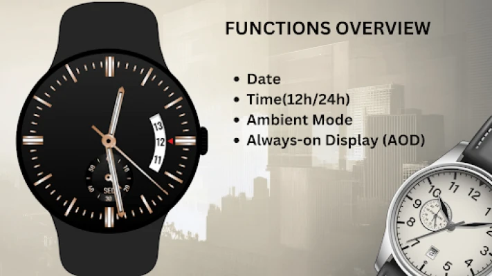Enhance your Wear OS device with the Classic Elegant Hybrid Watch Face, a beautifully crafted design that blends the sophistication of analog style with modern aesthetics. Featuring intricate gold accents, a bold second subdial, and a date indicator, this watch face is perfect for those who appreciate both luxury and function.
