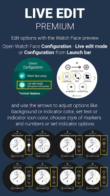 ★ Ability to edit options with the Watch Face preview. You can adjust options like background and indicator background color, set indicator icon and text color, set hour or minute numbers, set marker color and marker style or set indicator options using LIVE EDIT mode