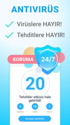 ✔️ Virüsleri, kötü amaçlı yazılımları, truva atlarını ve tehditleri kaldırır