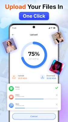 With Cloud storage, you can safely back up your images, videos, documents, audio files, and contacts & access them anytime, anywhere. This is the app for users who want to free up space, secure their data, and enjoy a smooth backup and restore experience.