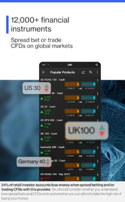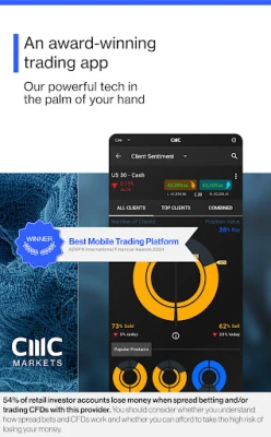 Our award-winning CFD trading app* gives CMC Markets’ clients access to real-time trading on the price movements of indices, forex, shares, commodities and treasuries.