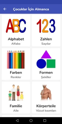 - Bu uygulama, çocuklar veya yeni başlayanlar için Almanca öğrenmenin bir yoludur. Almanca öğrenmeyi verimli ve eğlenceli hale getirir.
