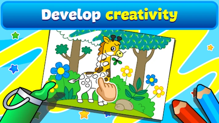 Onların sanatsal yeteneklerini serbest bırakın! Boyama Oyunları: Çocuklar için Sanat, kalemler, boya fırçaları, pasteller, simler ve desenler gibi bir dizi çizim aracı sunar. Küçük sanatçılarınızın farklı tekniklerle deney yaparak dijital tuvalde hayal güçlerini canlandırmalarına izin verin.
