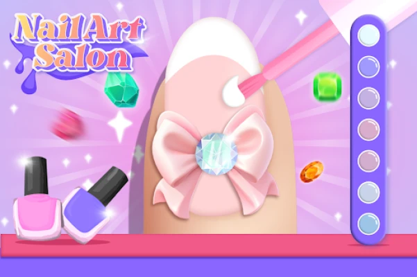Özellikle kız çocuklar için tasarlanmış eğlenceli ve yaratıcı Tırnak Sanatı Salonu oyunumuzda tırnak sanatı ve ojenin göz kamaştırıcı dünyasına dalın! Mükemmel manikürü yaratmak için gökkuşağı renklerinde ojeler, ışıltılı parıltılar, benzersiz tırnak şekilleri ve sevimli aksesuarlarla denemeler yaparken hayal gücünüzü serbest bırakın.