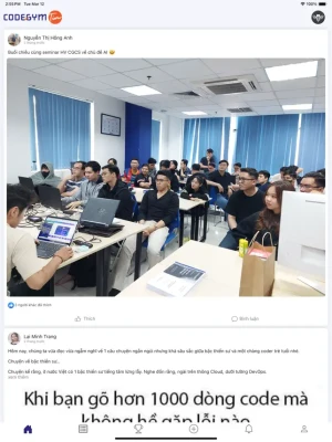 CodeGym Tim là một ứng dụng hoàn toàn miễn phí, là nơi kết nối giao lưu giữa các thành viên đồng thời là ứng dụng quản lý hoạt động học tập của học viên tại CodeGym Việt Nam