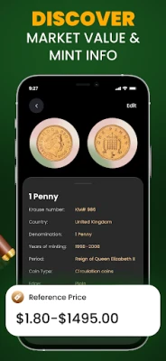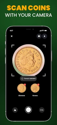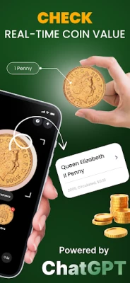 • AI‑Driven Coin Recognition: Capture any coin to instantly learn its denomination, mint year, and country of origin.