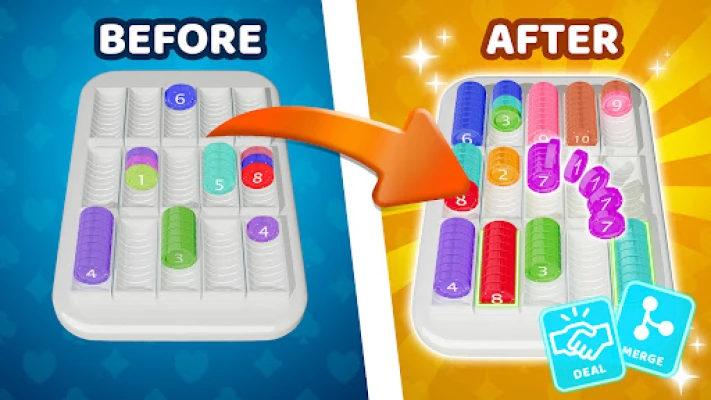 Your mission is to sort and collect coins, unlocking new ones to reveal the hidden cards. 🌟 Can you clear the coin board and save the royal family? It's a free coin game that's all about sorting, merging, and collecting coins.