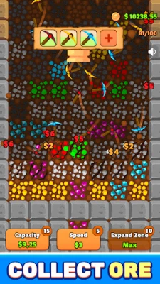 - Dynamic Gameplay: Watch as your pickaxes bounce around underground, breaking blocks and collecting valuable resources.