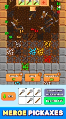- Merge and Upgrade: Combine pickaxe parts to create powerful tools and enhance your digging capabilities.