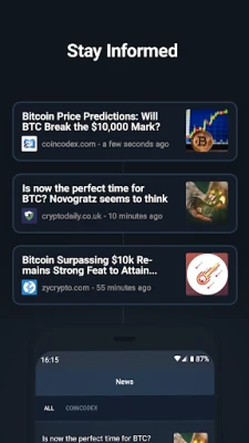 Cryptocurrency is not just about the price charts. With its news section, the CoinCodex app makes sure you stay on top of the latest developments in the cryptocurrency and blockchain industry. You’ll also be able to find the most important Bitcoin news, exchange and wallet reviews, crypto price predictions, and much more.