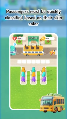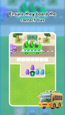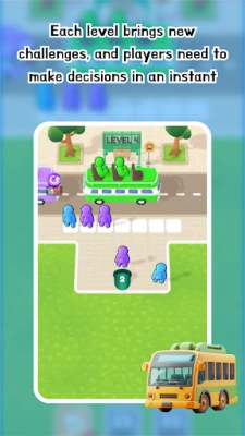 "Color Bus Jam - Color matching challenge! Guide the colorful stickmen onto buses of the same color to avoid confusion! A magical stress-relieving game that tests your reaction and strategy. Try it for free now!"