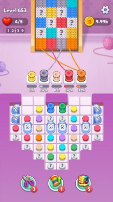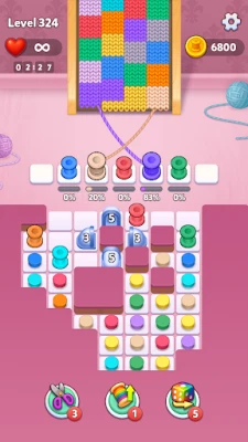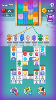 Your goal is to clear colorful tangles by guiding threads to their rightful spools below. Strategically pick the right spool to free the ropes and solve each challenge.
